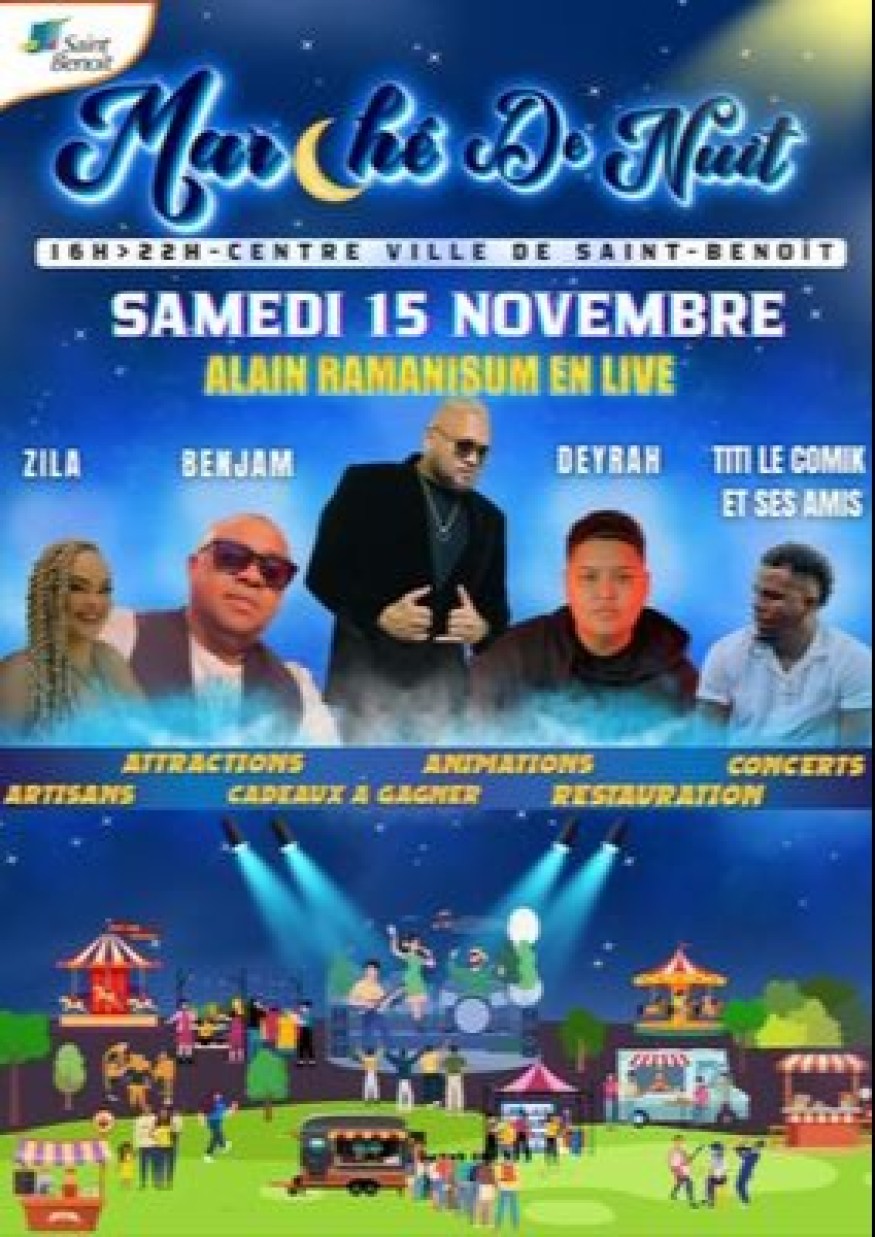 Le Marché de Nuit de Saint-Benoît revient pour une soirée festive mêlant concerts, stands et animations en plein cœur de ville.