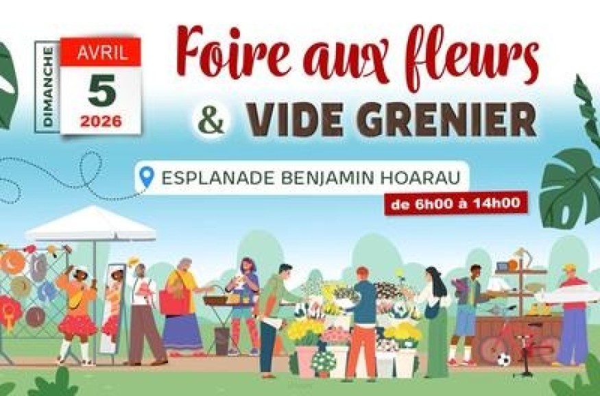 La Foire aux fleurs et le vide-grenier reviennent au Tampon, sur l’Esplanade Benjamin Hoarau le dimanche 5 avril 2026.